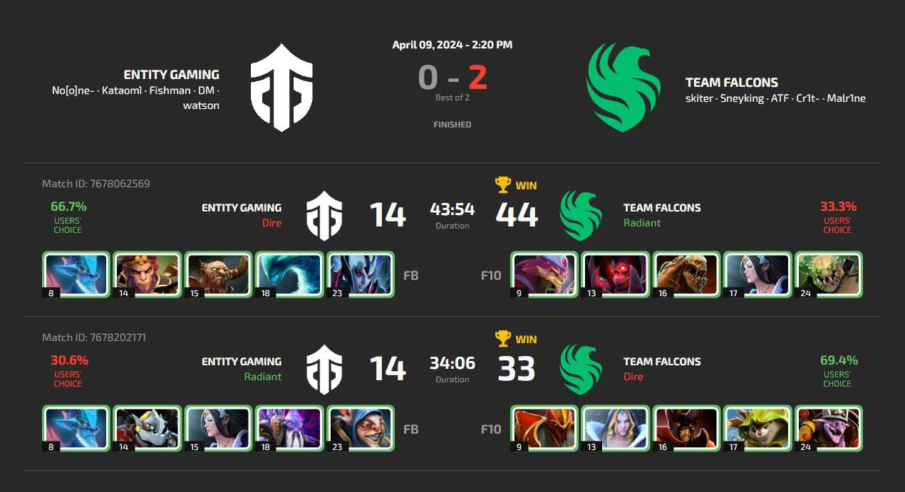 At the end of the day, Entity went for a second round of matches, this time against Team Falcons, who only needed one more win to guarantee their Playoffs position. Both games ended in favor of the MENA-backed squad, as they could continue to display their dominance.