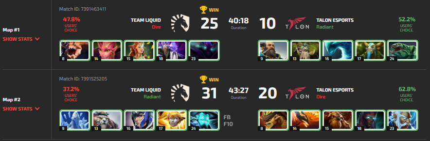 In the first game, Talon looked like they had a strong start in their lanes. But they couldn’t make anything happen and allowed Liquid to recover. In the mid game, Talon clearly had damage issues and couldn’t kill any Liquid heroes, allowing the WEU team to take the first map.