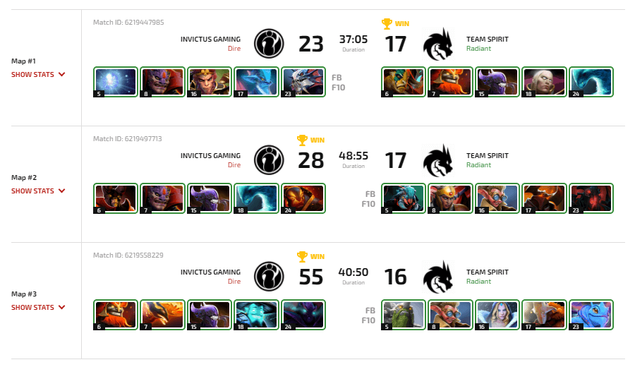 Несмотря на прогнозы, коллектив из СНГ смог выиграть у китайской команды первую карту. Одна успешная драка привела к рашу трона. На второй карте Team Spirit также имели высокие шансы на победу и вели до 30й минуты, однако неудачный заход на хайграунд разрушил все их планы.