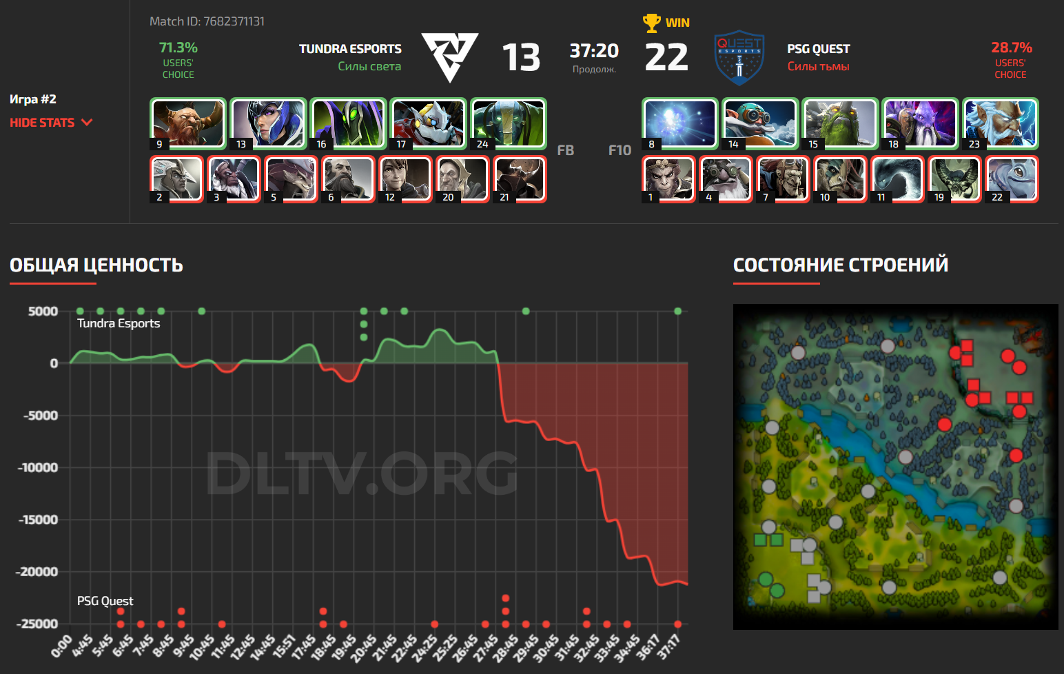 Вторая карта прошла при полной доминации PSG Quest, пикнувших проверенную связку Wisp и Gyrocopter. Pure на Luna почти всю игру лидировал по общей ценности, но вновь не смог перебить TA2000 на Gyrocopter.