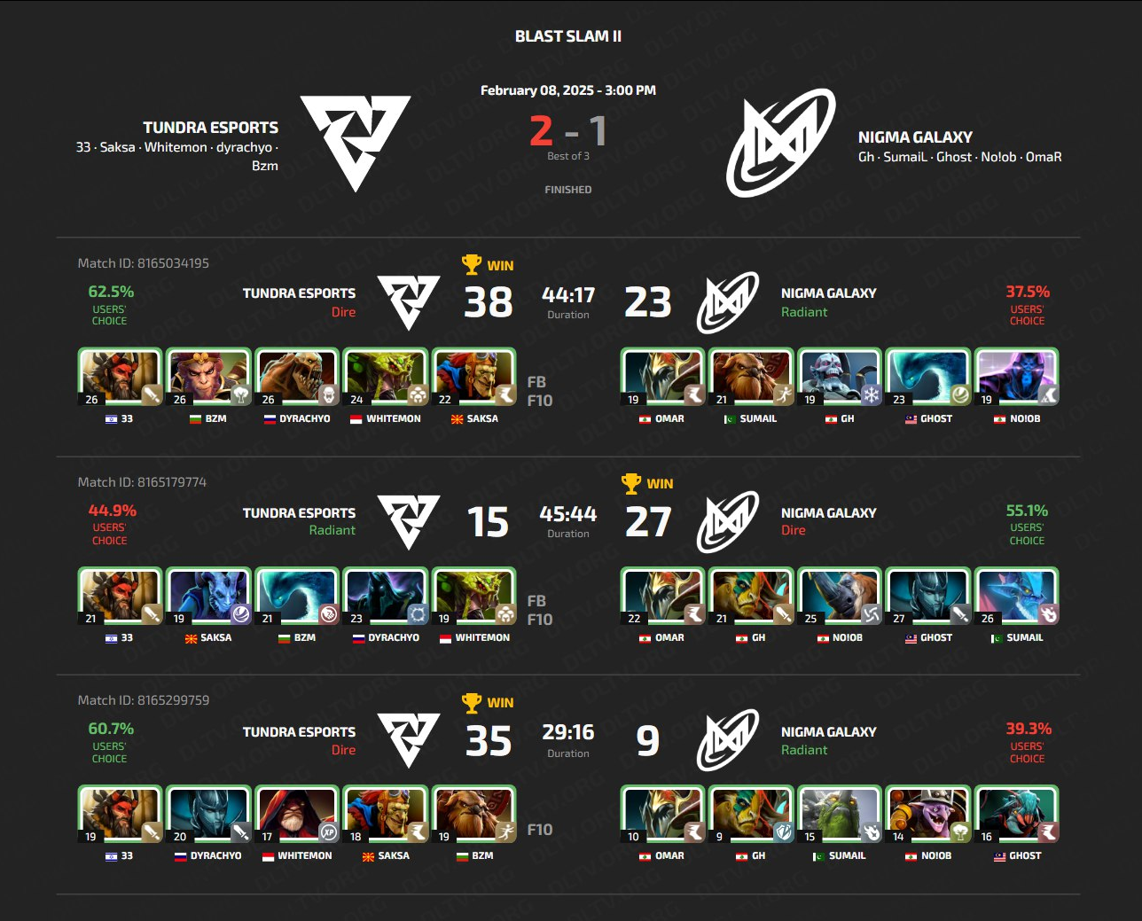 Tundra Esports вышли в гранд-финал Blast Slam II, обыграв Nigma Galaxy в полуфинале.